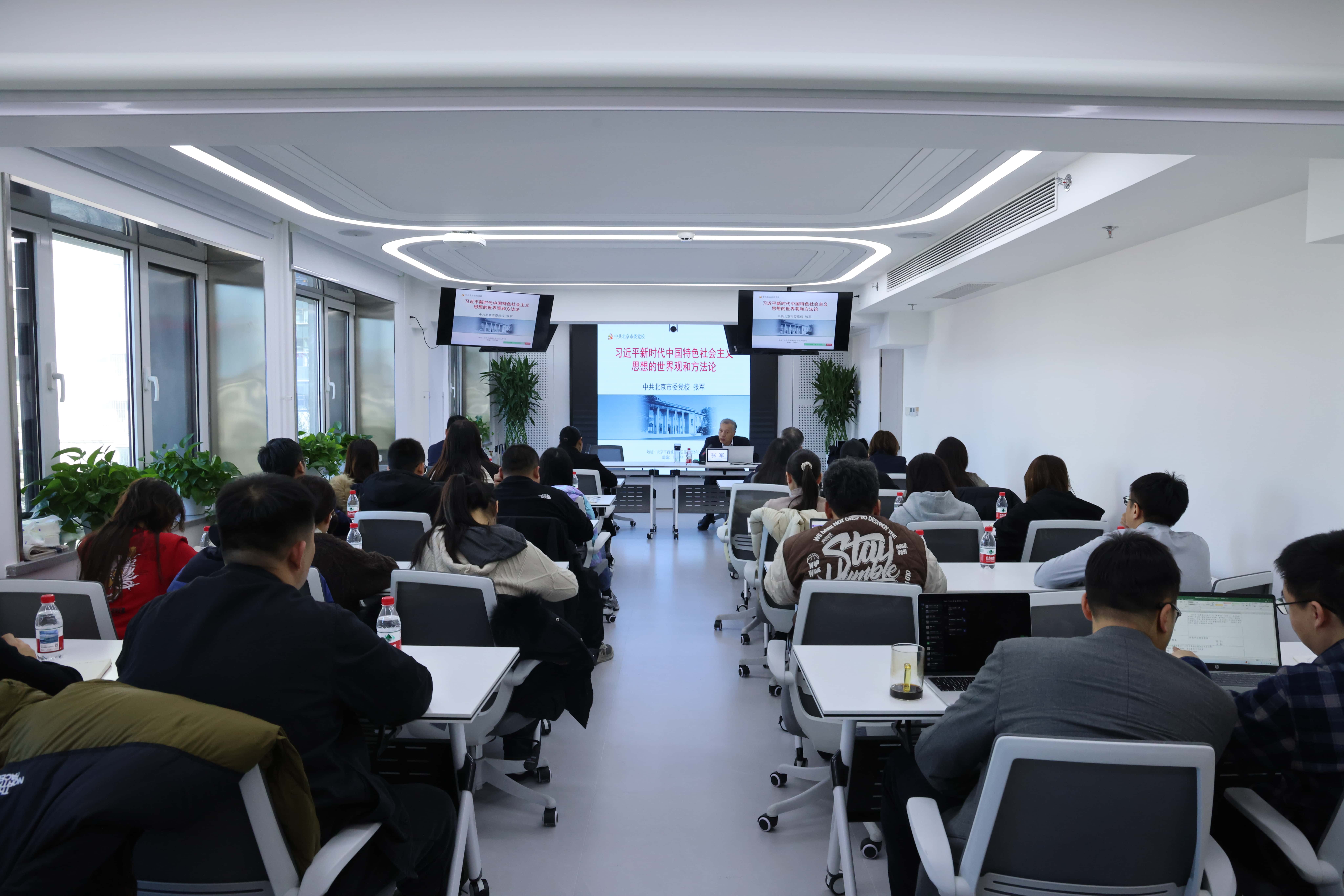 本次培训特邀北京市委党校原副校长、一级巡视员张军教授作专题辅导。张军教授以《习近平新时代中国特色社会主义思想的世界观和方法论》为题,结合学习贯彻党的二十届四中全会精神,从哲学主题、哲学立场、哲学特征、哲学方法、哲学视野、哲学品格等六个方面,系统阐释了习近平新时代中国特色社会主义思想的科学体系和精神实质,对于年轻干部和青年员工深学细悟习近平新时代中国特色社会主义思想,提升战略眼光、增强思维能力、提高履职尽责本领具有很强的指导性和实践性。